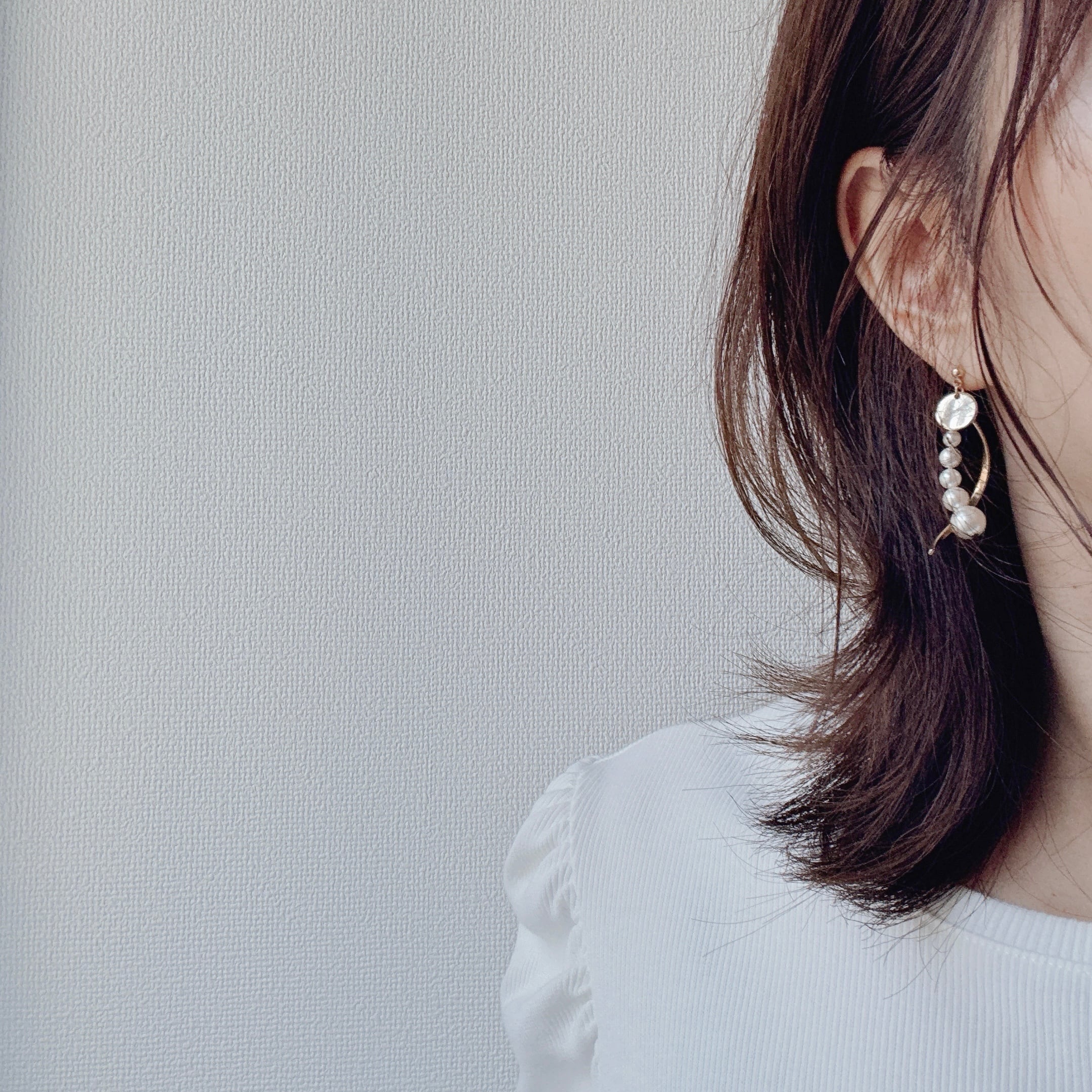 大きさの違うパールにツイストチャームを合わせたピアスです。