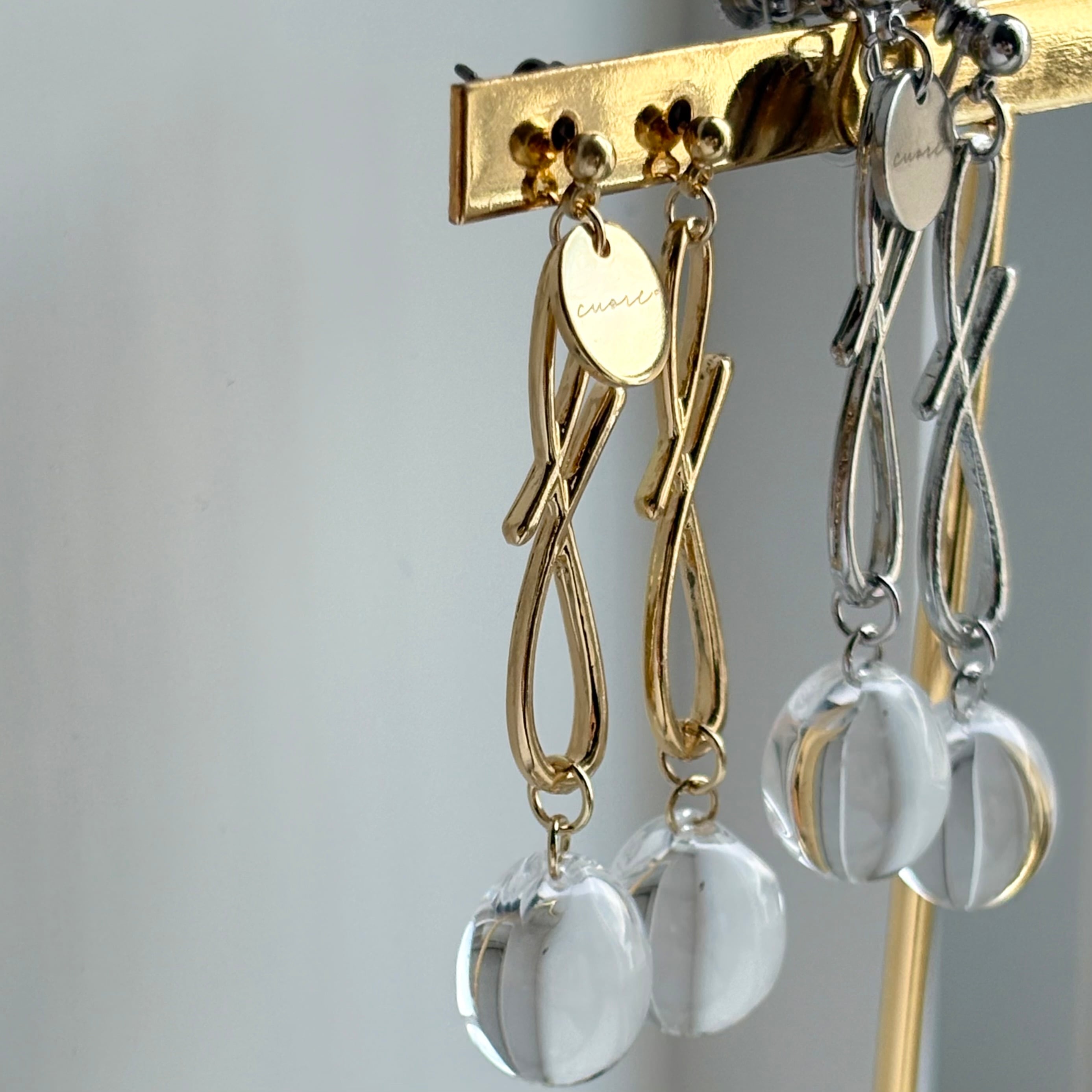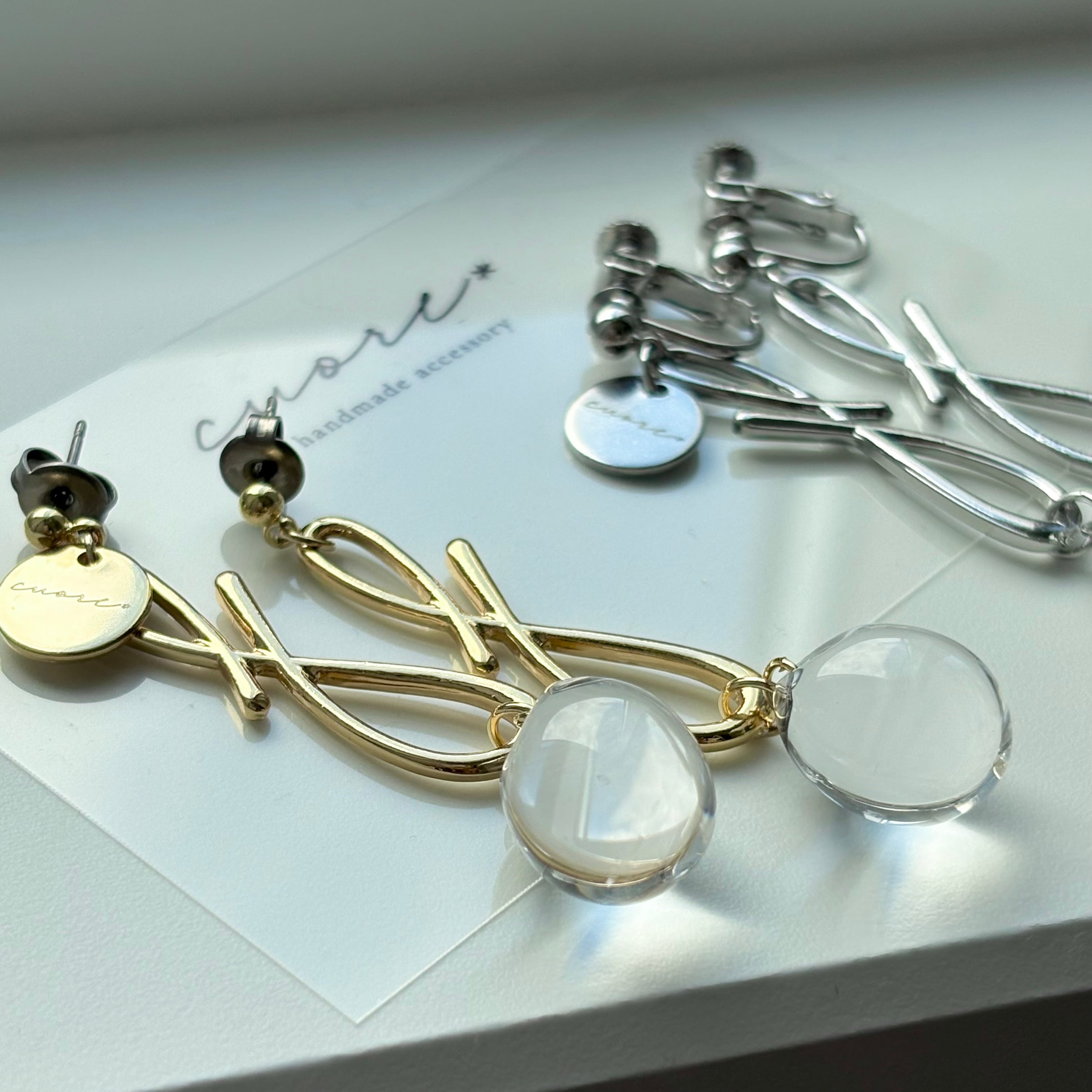 ニュアンスデザインのチャームにドロップクリアビーズを合わせたピアスです。