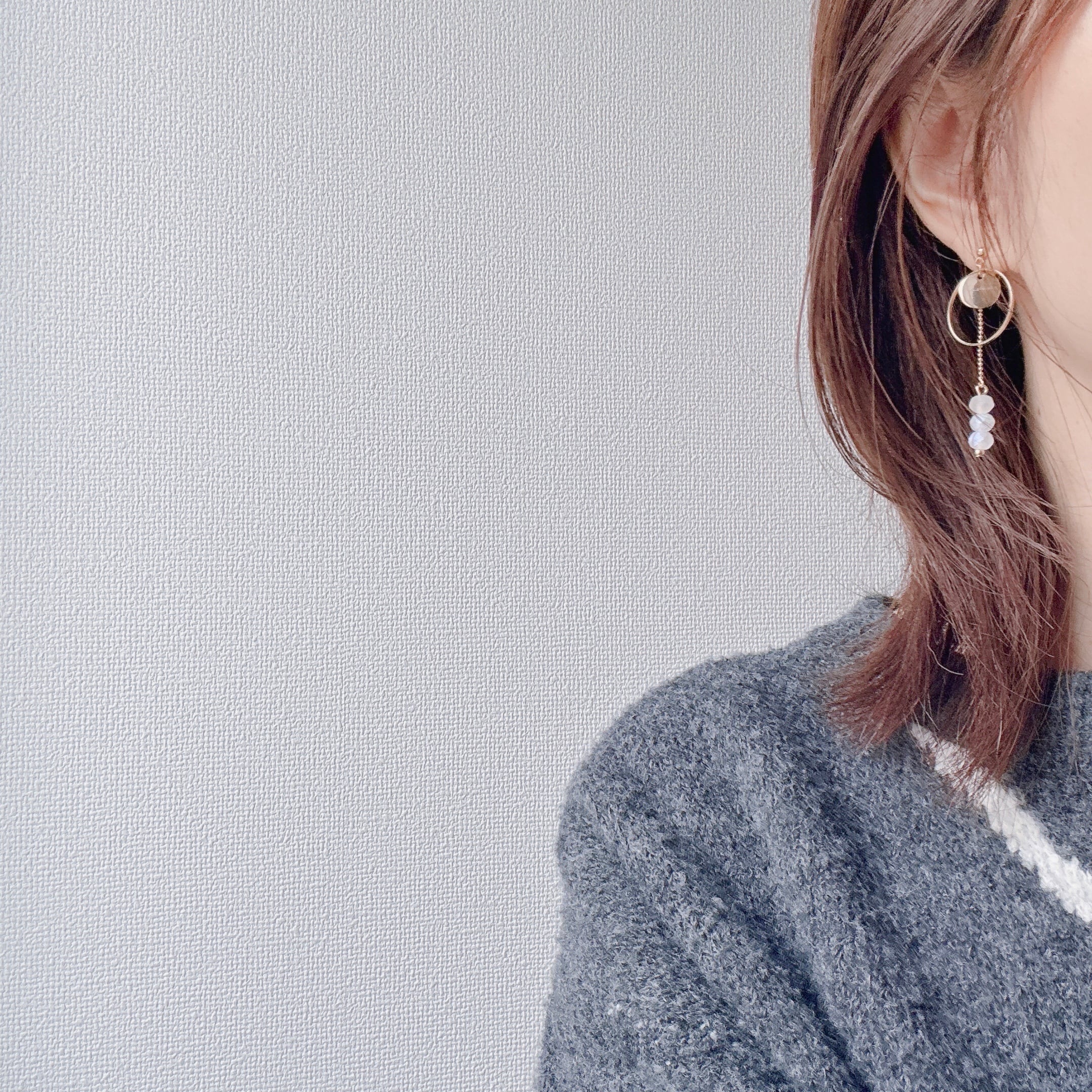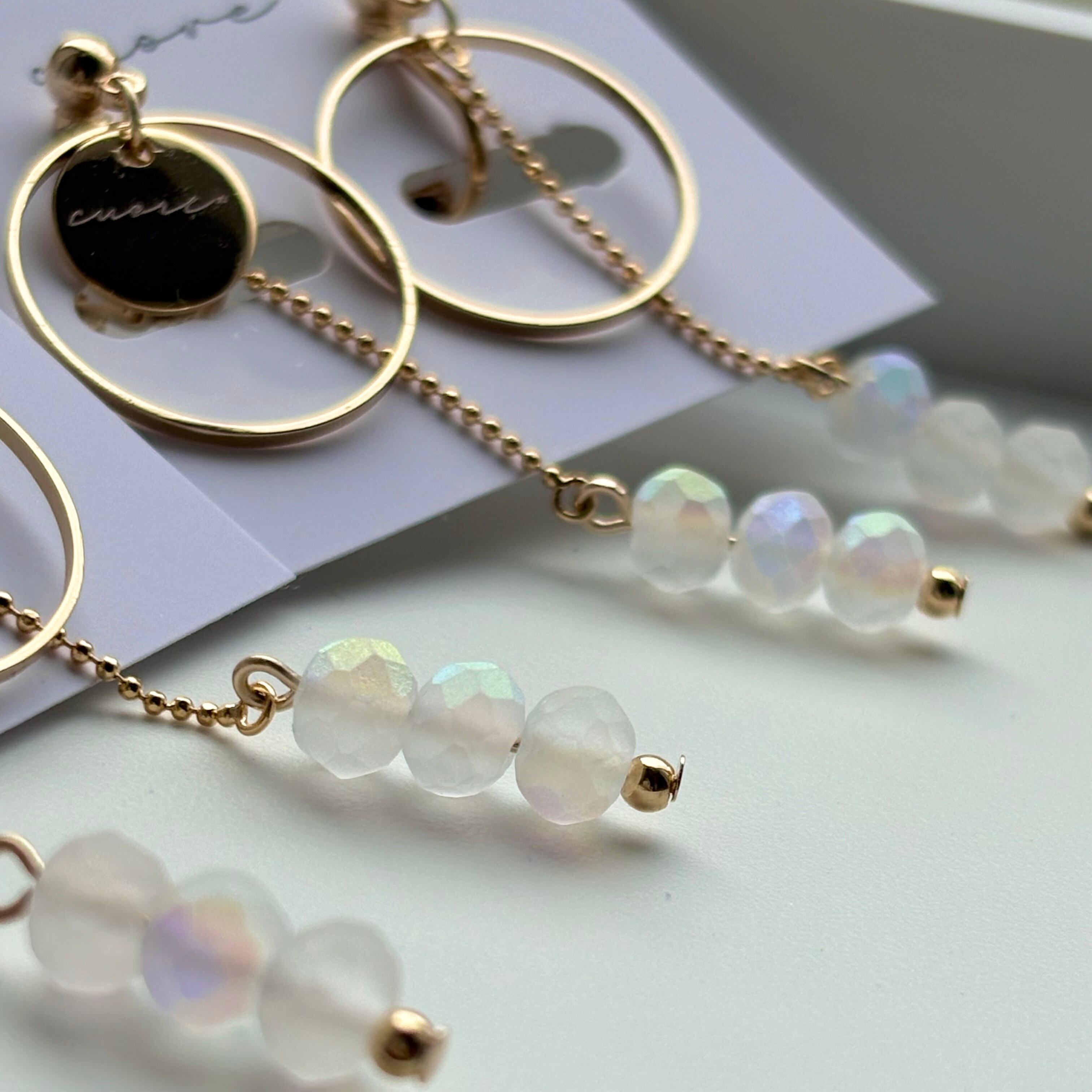 gold hoop×frost aurora beads pierce