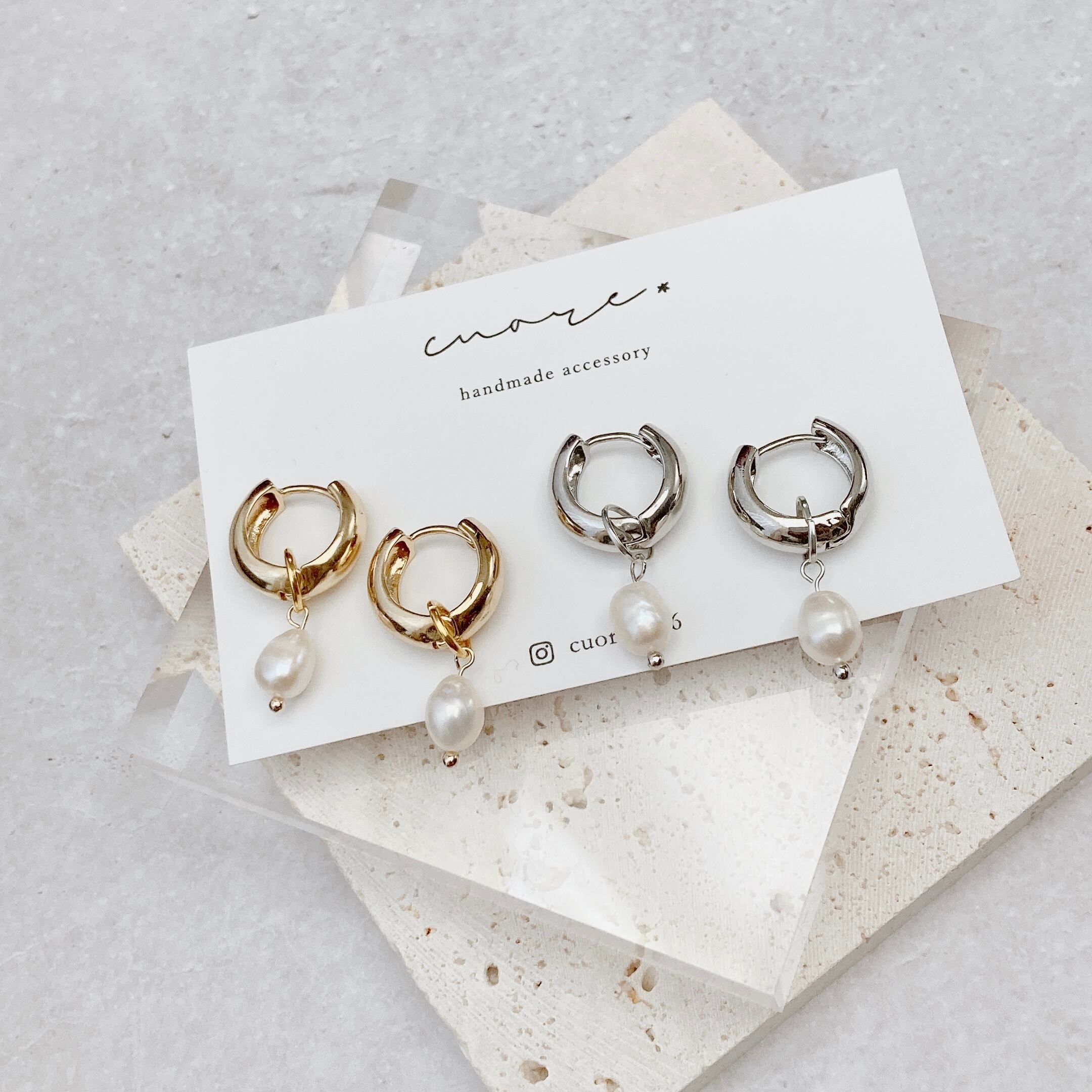 淡水パールは取り外し可能なので、シンプルなフープピアスとしても使えて2wayでお楽しみいただけます。
