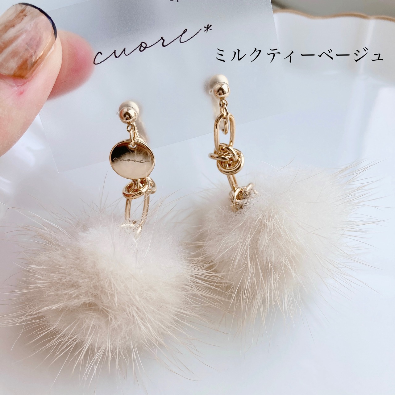 デザインチェーンにミンクファーを合わせたピアスです♡