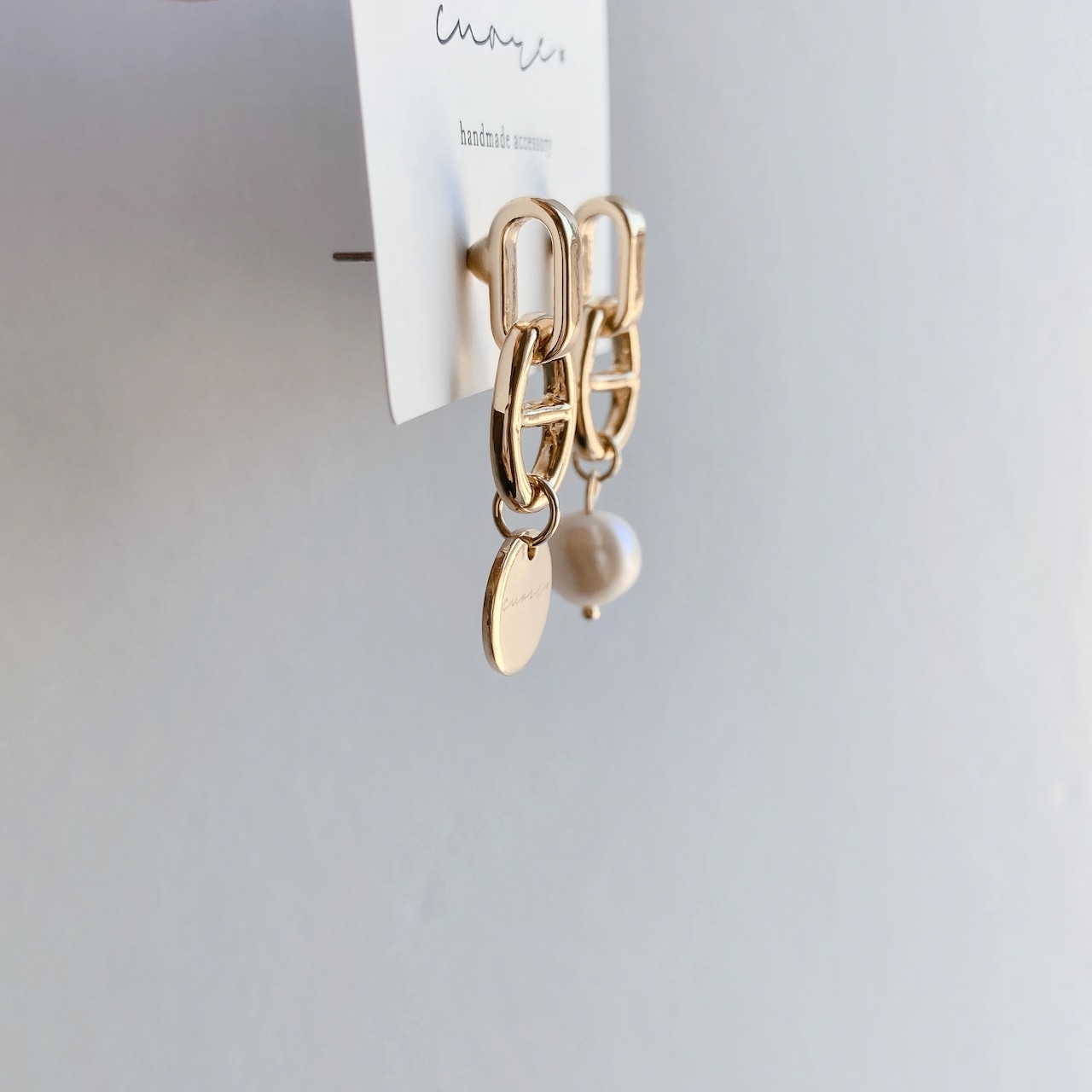 片方はブランドタグ、片方は淡水パールでシンプルに♡