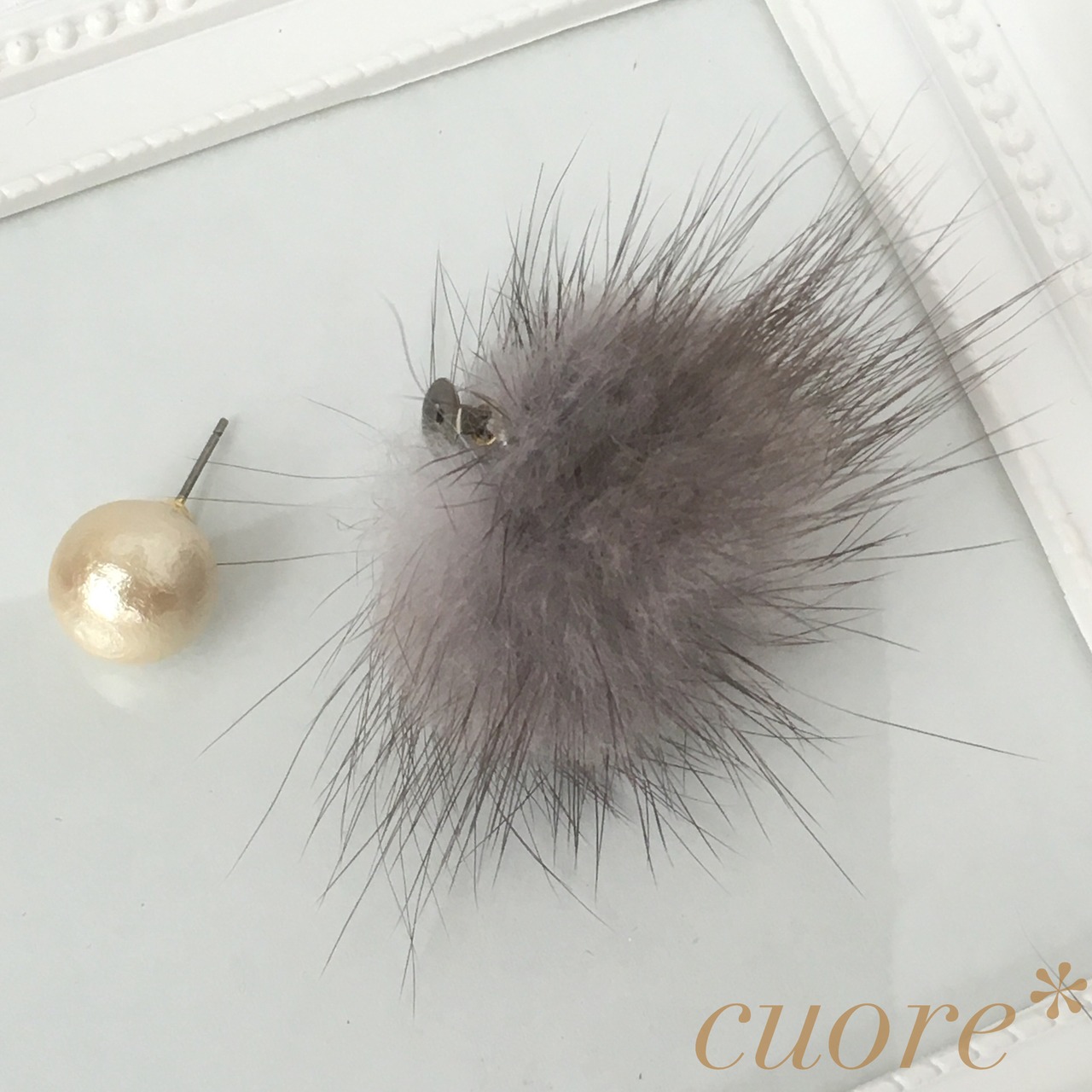 ピアスキャッチ部分にミンクファーを付けておりますので、キャッチを変えて一粒コットンパールピアスとしてもお使いいただけます♡また、お手持ちのピアスにミンクファーキャッチを合わせていただく事もできます◟̆◞̆♡